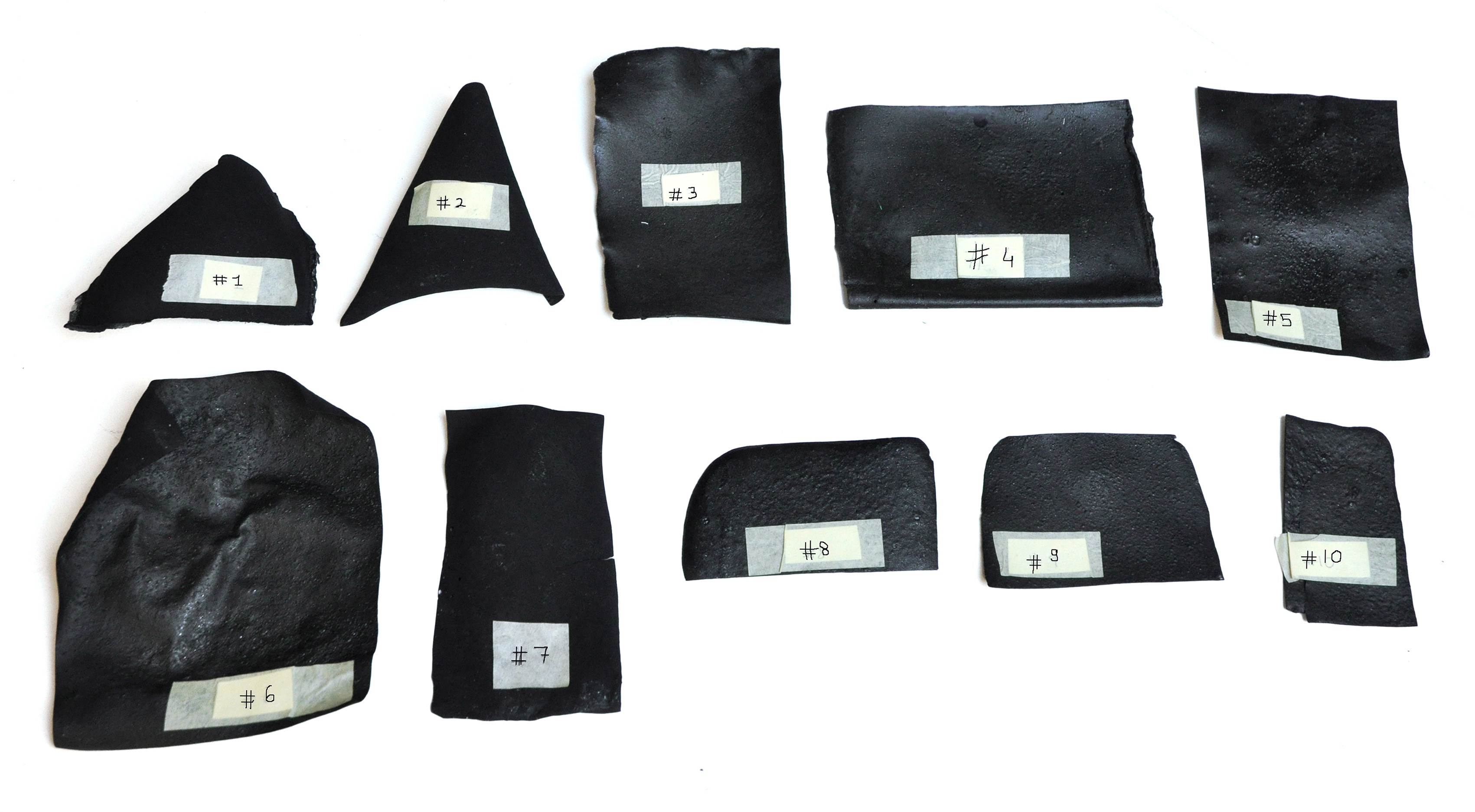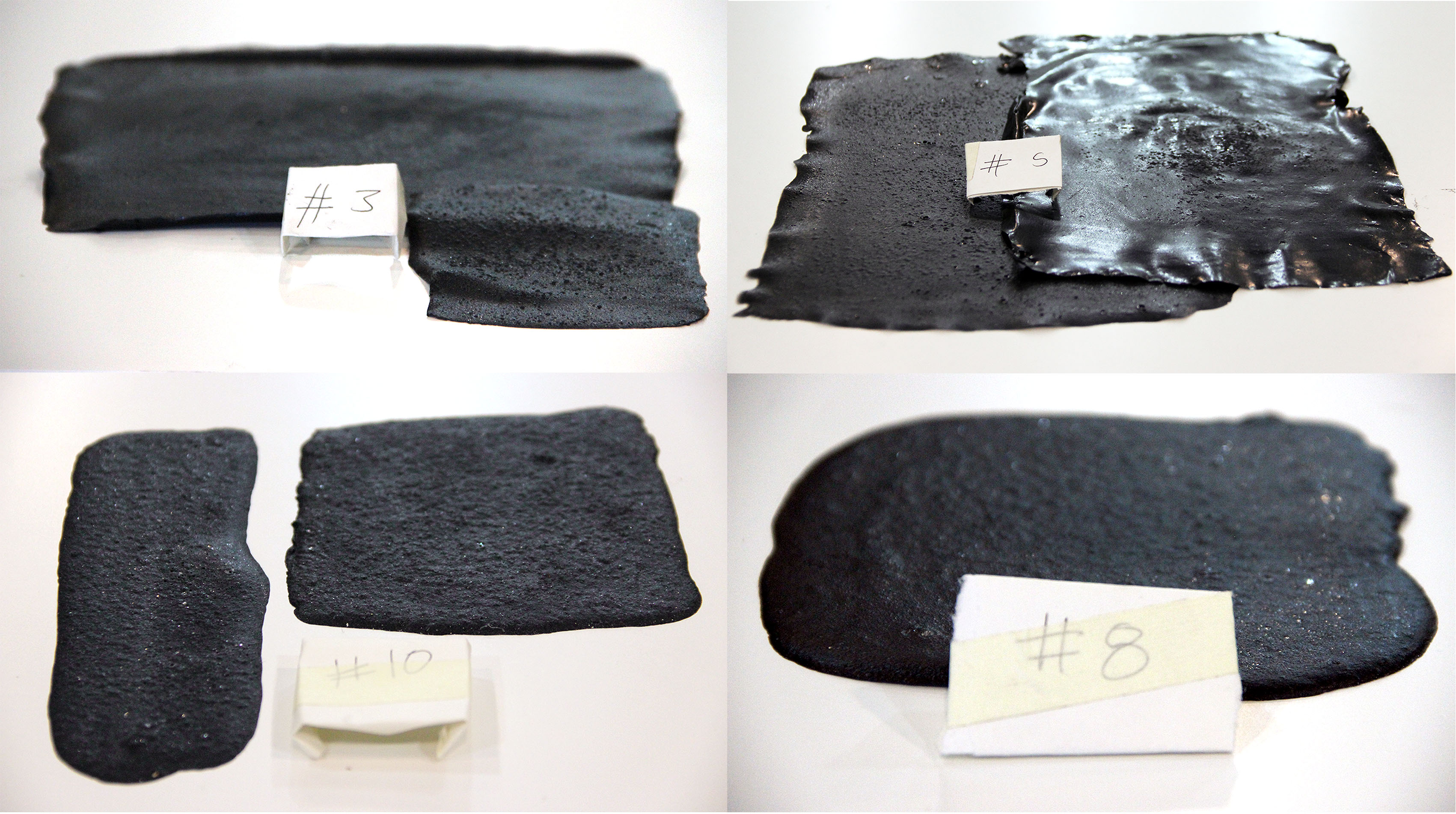 At the end of the experiments, we succeeded to have good results, with samples with different flexibility (hard like a rock to flexible like rubber) and textures (Rough to Smooth and Matte to Shiny). I noticed that some of the samples were conductive, an interesting fact that we could use for future e-textiles and wearables.