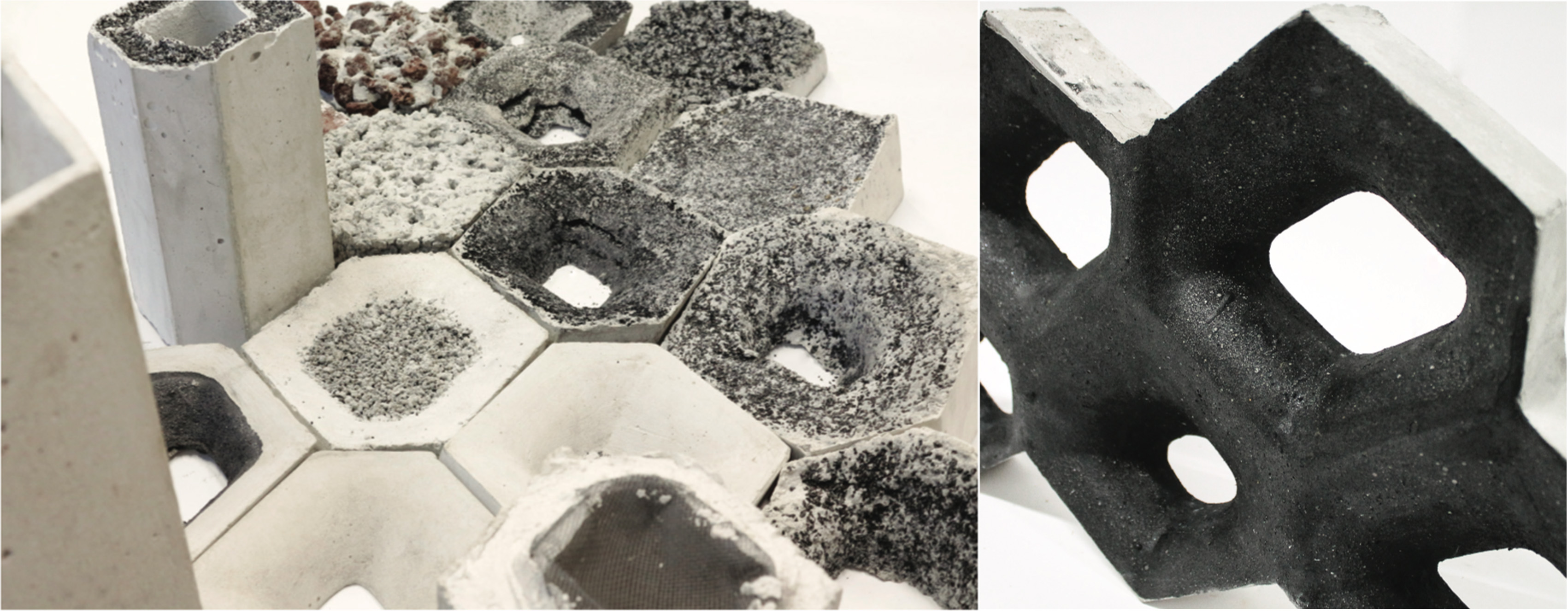 Outdoor filter module : concrete, bioplastic and activated charcoal, CEDIM Lab by Restology project, 2017