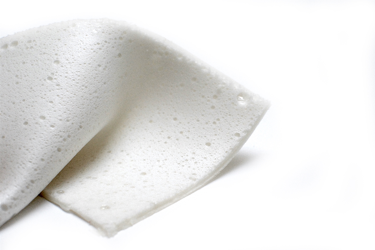 Bioplastic gelatine foam sample by Margaret Dunne, FabTextiles, Fab Lab Barcelona, 2018