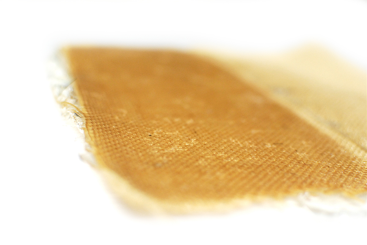Bio-composite gelatine+burlap sample by Margaret Dunne, FabTextiles, Fab Lab Barcelona, 2018
