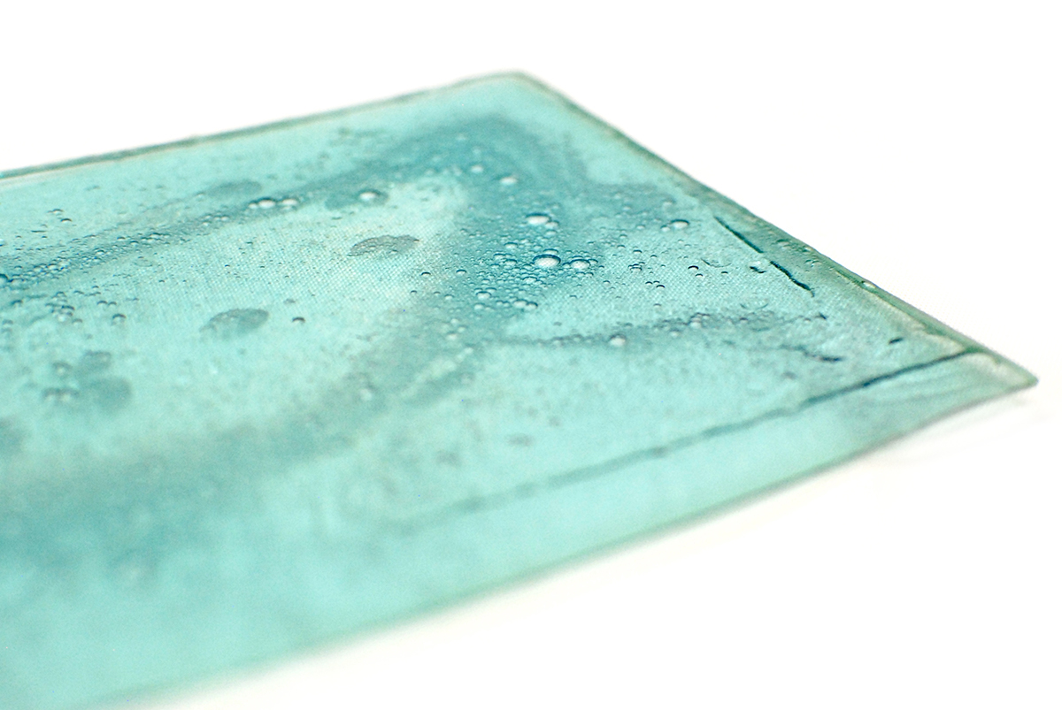 Bioplastic gelatine+spirulina sample by Margaret Dunne, FabTextiles, Fab Lab Barcelona, 2018