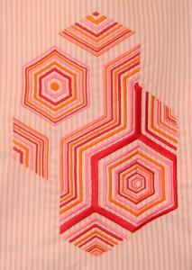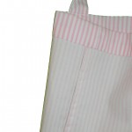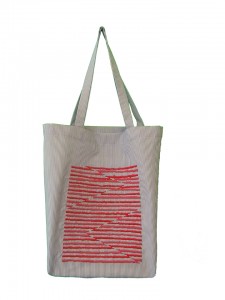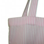 El último bolso, también con el mismo diseño, pero en este caso con una tela de rayas rosas y blancas y de nuevo con distintos bordados: