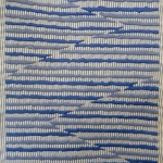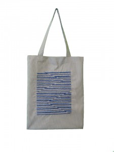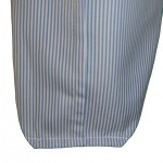 El siguiente ejemplo es el mismo diseño de bolso con una tela de rayas blancas y azules con dos tipos de bordado diferentes: