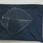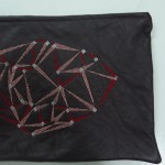 El primer bolso, se ha hecho con una tela aterciopelada y un bordado lineal de color plateado: