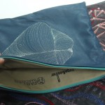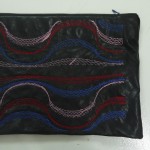 Además de los bolsos, también se bordaron unas bolsas en formato neceser, con una tela de polipiel: