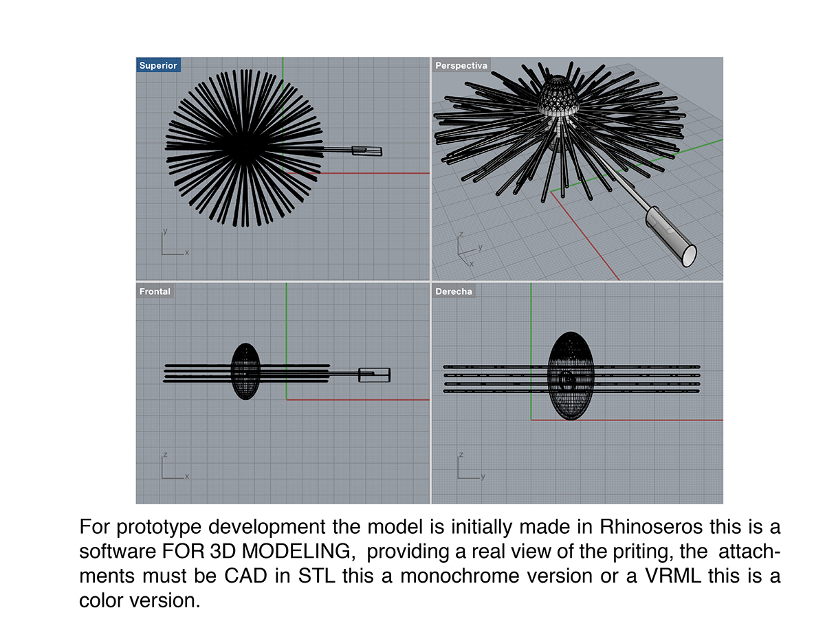 For prototype development the model is initially made in Rhinoceros this is a software FOR 3D MODELING, providing a real view of the printing, the attachments must be CAD in STL this a monochrome version.