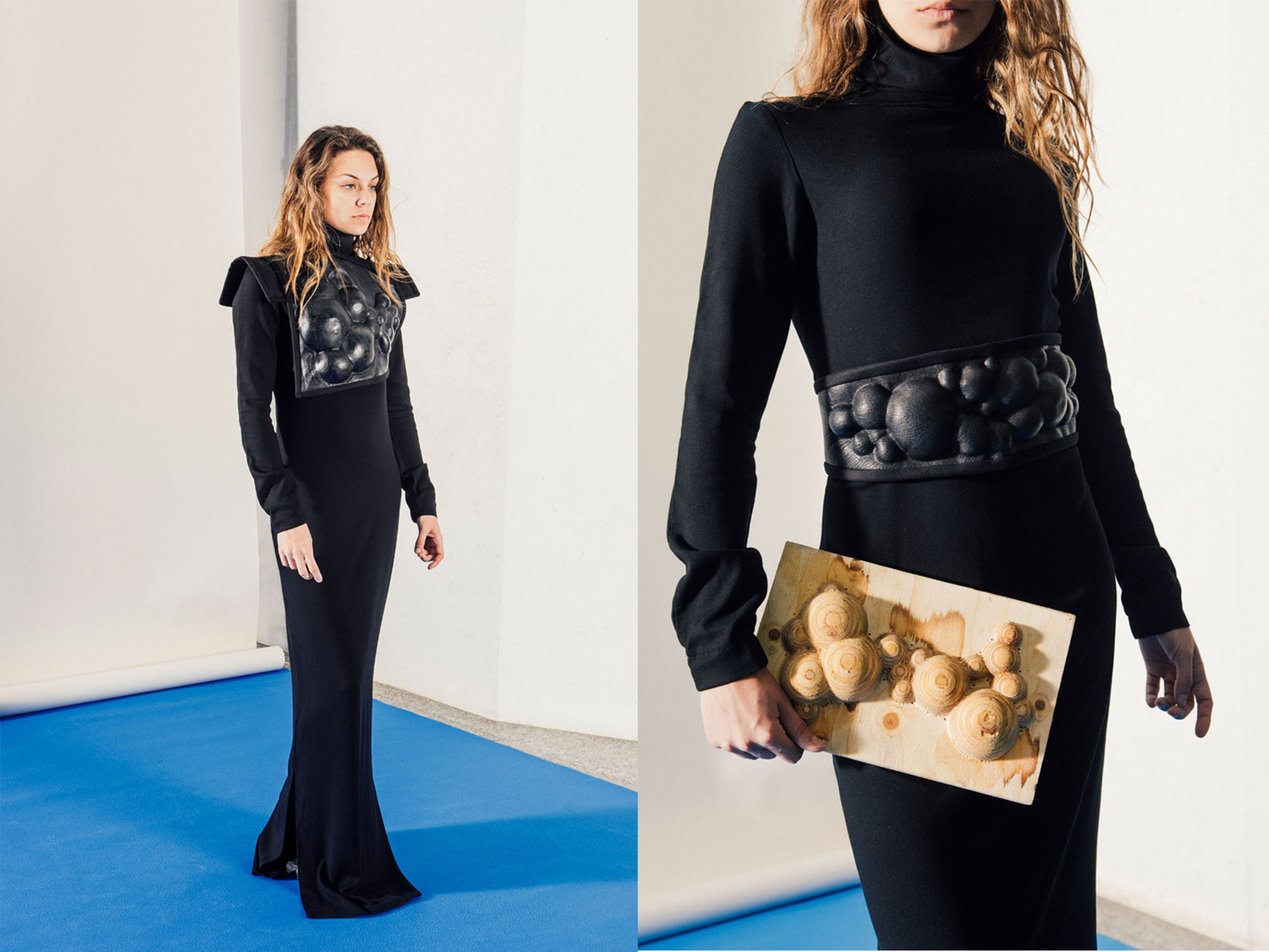 This is the amazing collaboration with Esther Perbandt through the Worth Partnership Project. The collection ¨To The Moon“ was presented at Mercedez Benz Fashion Week Berlin where we showcased 3D forms of molded leather. This was a successful and didactic collaboration but the most amazing part of it was working with a professional such as Esther.
