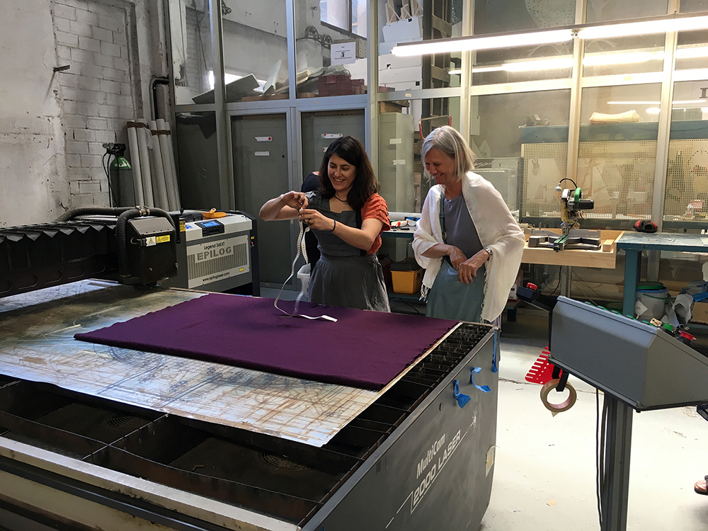 Hands on use of laser cutting technology for fabrics, from 2D patterns to 3D structures. The participants were introduced to 2D design programs and file preparation for laser cutting fabrics. A great variety of different fabrics was tested and a catalogue of speeds and power for each fabric was generated for cutting and laser engraving. The participants brought as well local fabrics from Iceland such as fish leather, felt, cow leather and horse hair in order to learn how these materials can be used with digital fabrication technologies and apply the techniques back in their schools.