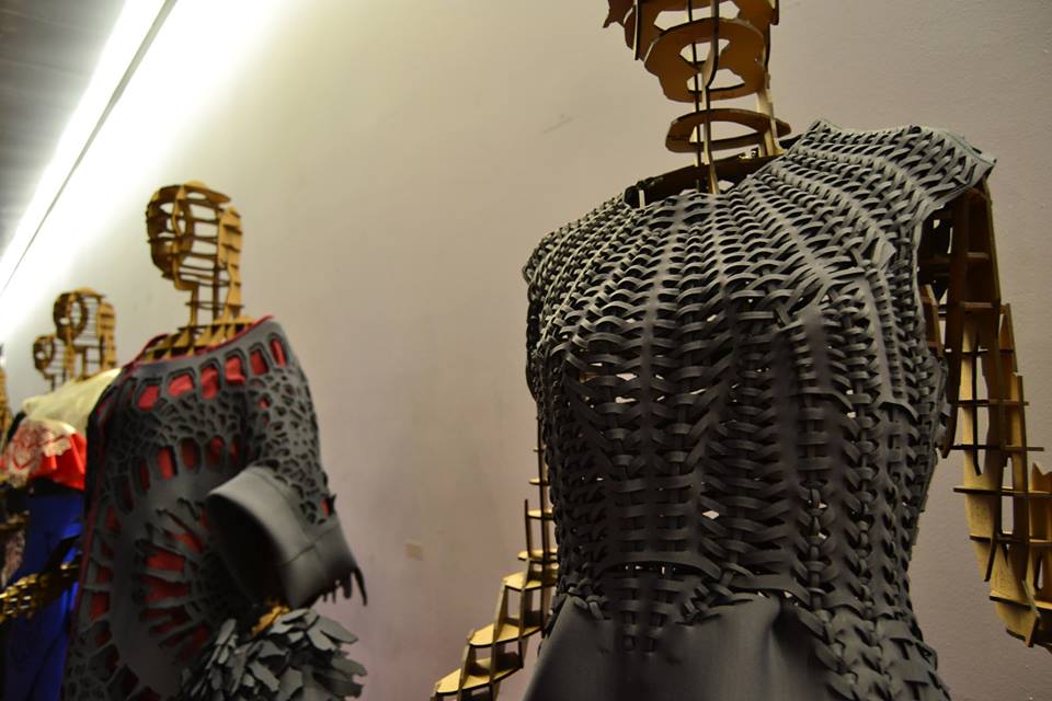 The showcase came up as an idea to compile this tendency in fashion and present garments that come from different contexts. Brands based in Barcelona, such as Jorge & Esther, start ups that are doing hardware development inside the fab lab, such as FirstV1sion , work of students in local Fashion Schools, IED , ESDI and international creators based in other Fab Labs, such as WAAG Society in Amsterdam, Fac Lab in Paris, artists like Afroditi Psarra during their artistic residency at EASTN that work with e-textiles and performance. FAB TEXTILES questions the way fashion industry and education have transformed our life in prototypical and excessively accelerated manner. Inside a triggering and innovative environment, the fab lab sets the ground for experimentation on new materials and processes through a technological prism that addresses innovation and entrepreneurship. New ways of manufacture are carried out, combining traditional methods and new digital tools. Under this context, you can navigate between integrating some sensors on a wristband or making a four meter long tessellated dress with wood.