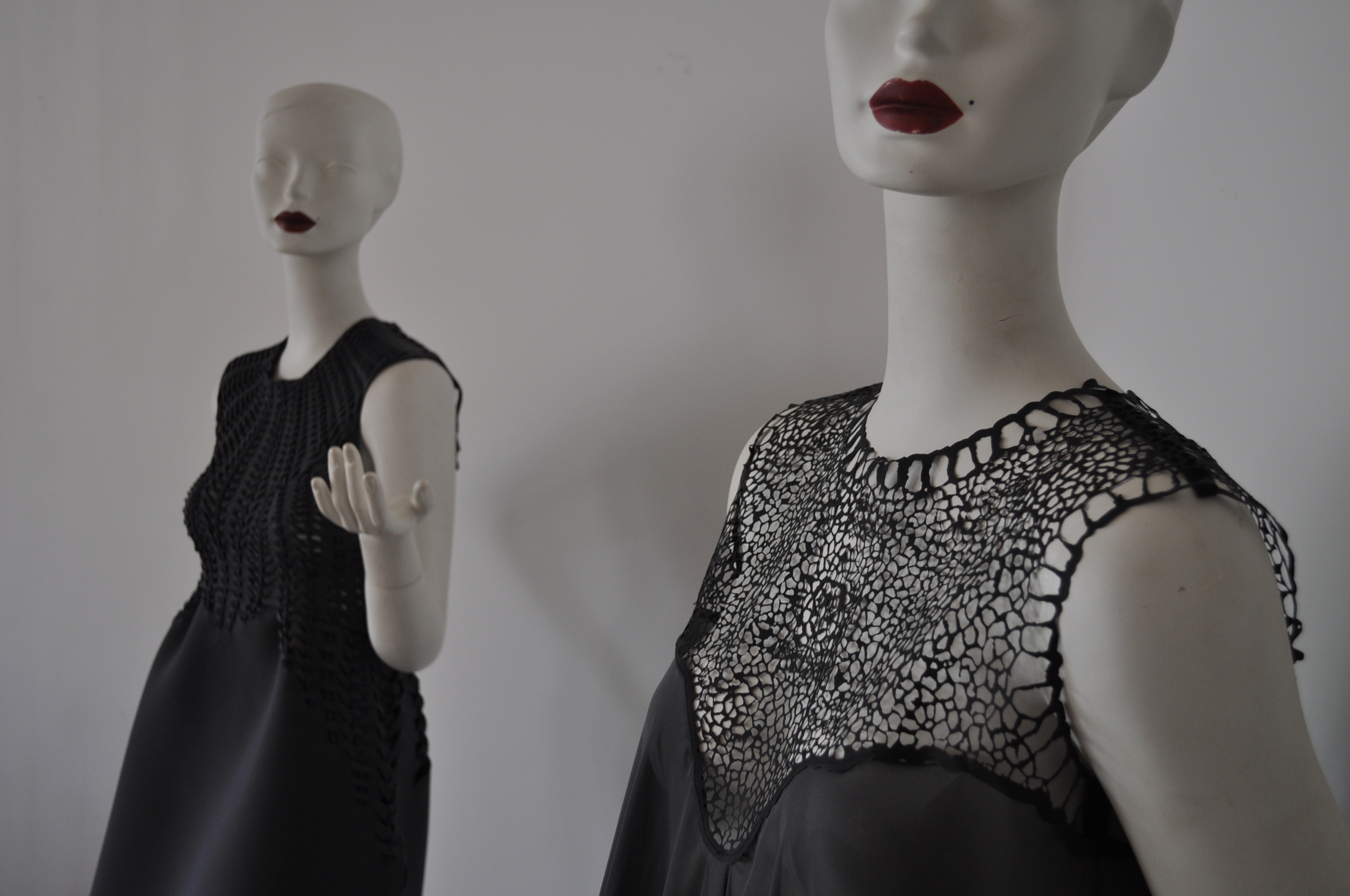 Emma Melin, during her studies at IED fashion school she discovered the Fab Lab Barcelona and the possibility of creating patterns on textiles by designing with illustrator and sending directly to the laser cutter.During her tesis presentation she made a collection that showed her designs form the first day she got introduced to this new technology until the moment she became an expert and dominated the tool.