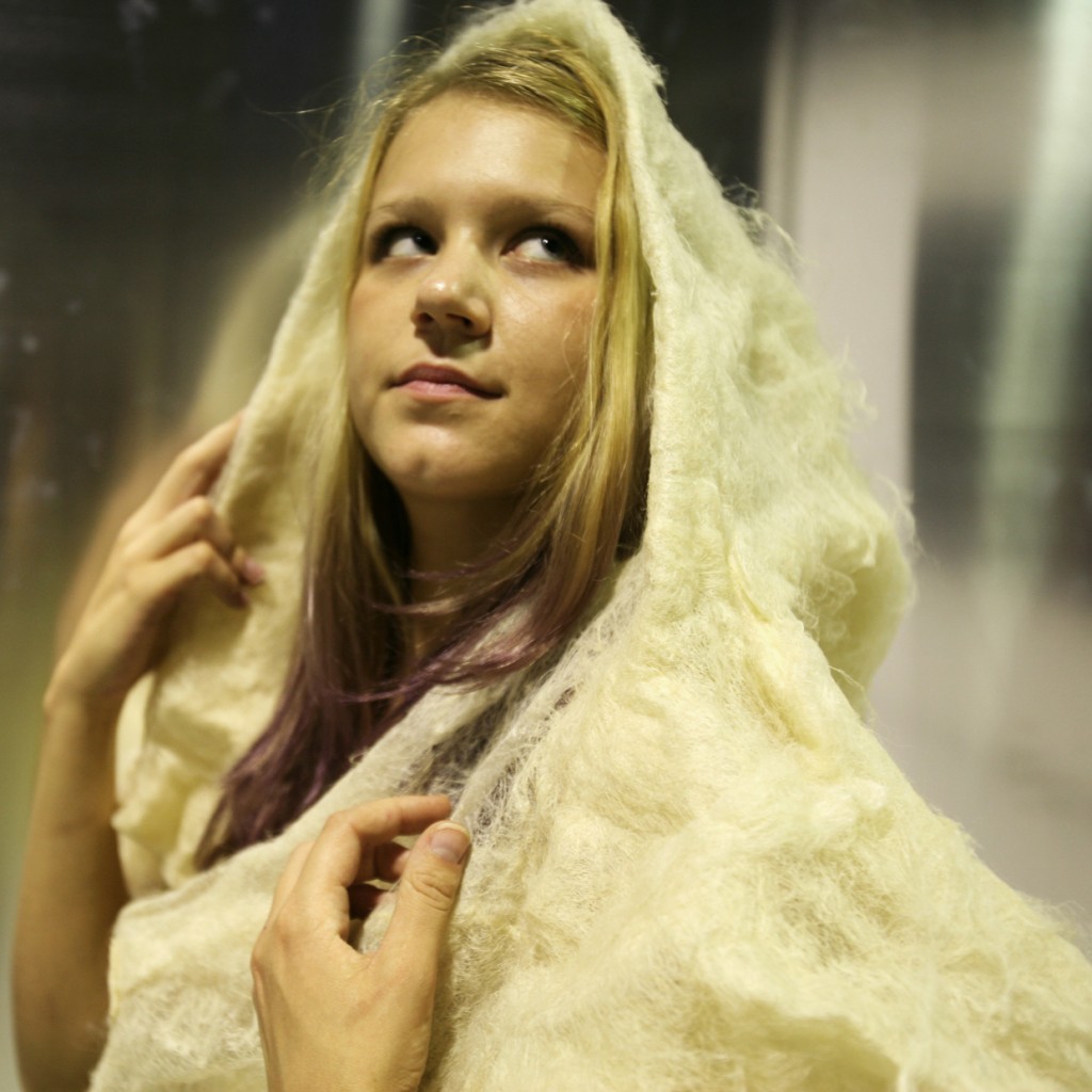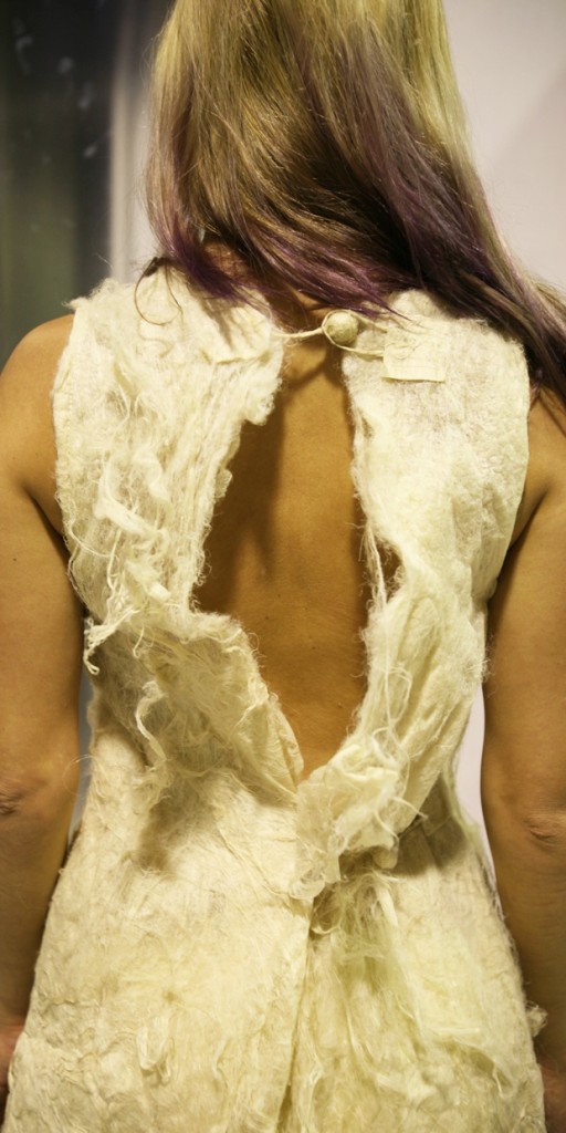 Using natural hemp fibers and white glue, the application on wearables opens new concepts in fashion design based on ecological concepts.