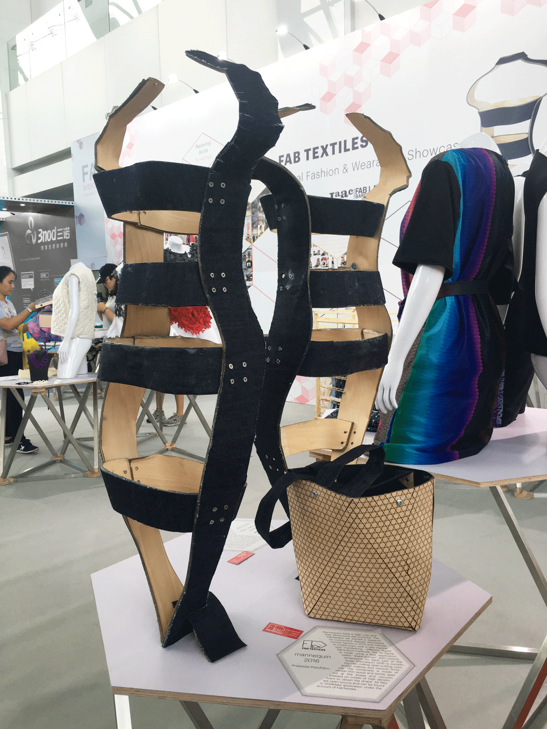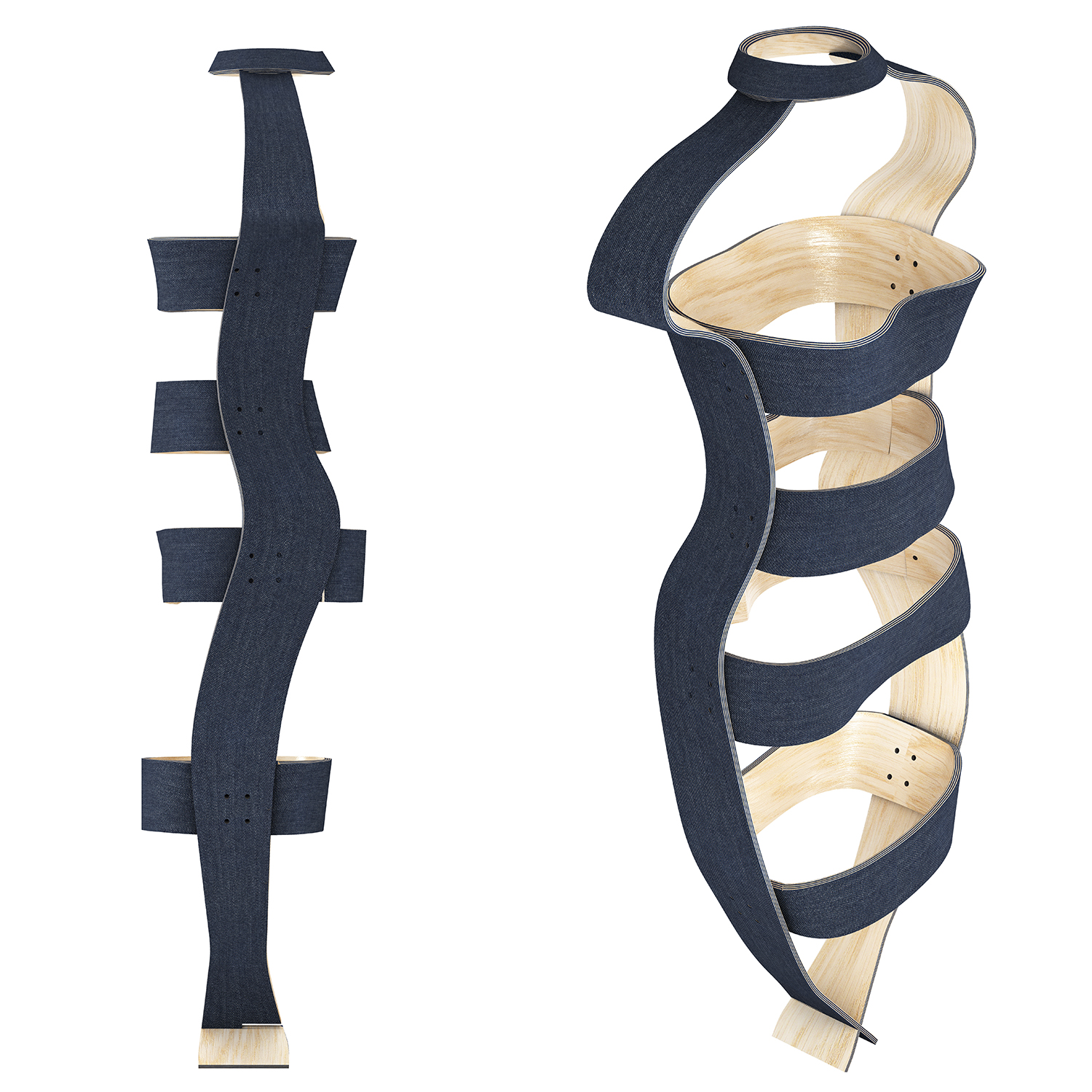 One of the lab´s research themes is the design and production of digital mannequins as an abstract representation of the human body using different fabrication processes and materials. In order to obtain the body you can either scan yourself - even using 123d catch of skanect or you can make your proportions replica with MakeHuman freeware. Up to now we have a waffle mannequin and various stacked mannequins using 123 make application but this year we decided to focus on the creation of a laminated composite of textile and thin wood bending process on a high density foam mold. The idea of a soft-hard mannequin like skin and bones that is sketched with few lines but at the same time maintains structural properties.
