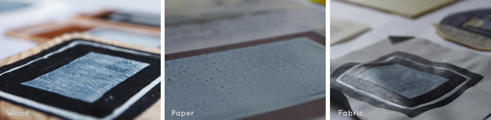 We developed tests on different materials such as fabrics, conductive glass, acrylic, wood and paper. Ideally the material does not to have texture, to avoid the layers cross the material or mix it each other.