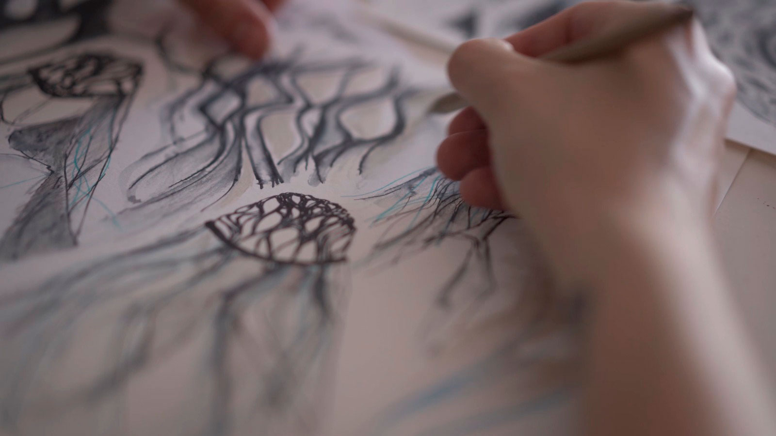 -The user can change the light effects of the built-in LEDs through a button (custom circuit and board). In turn, the light is reflected in the "hair" of fiber optic embroidered by hand in the translucent layer.