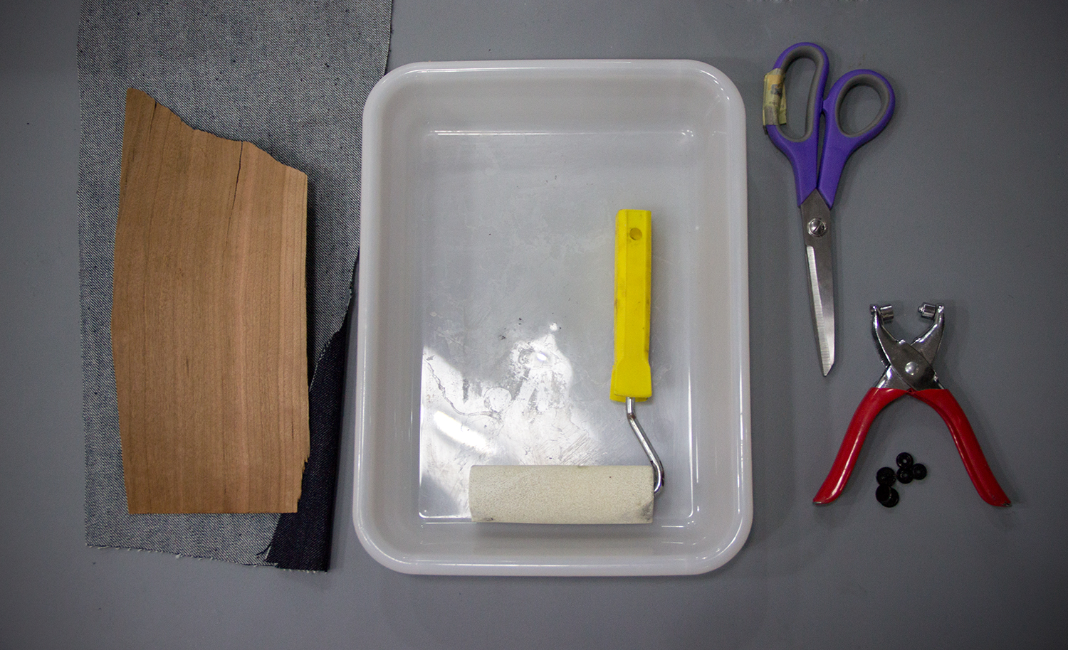 Now you can finish your piece by attaching the buttons to the blacelet. For that you just need the appropriate rivet gun or tool.