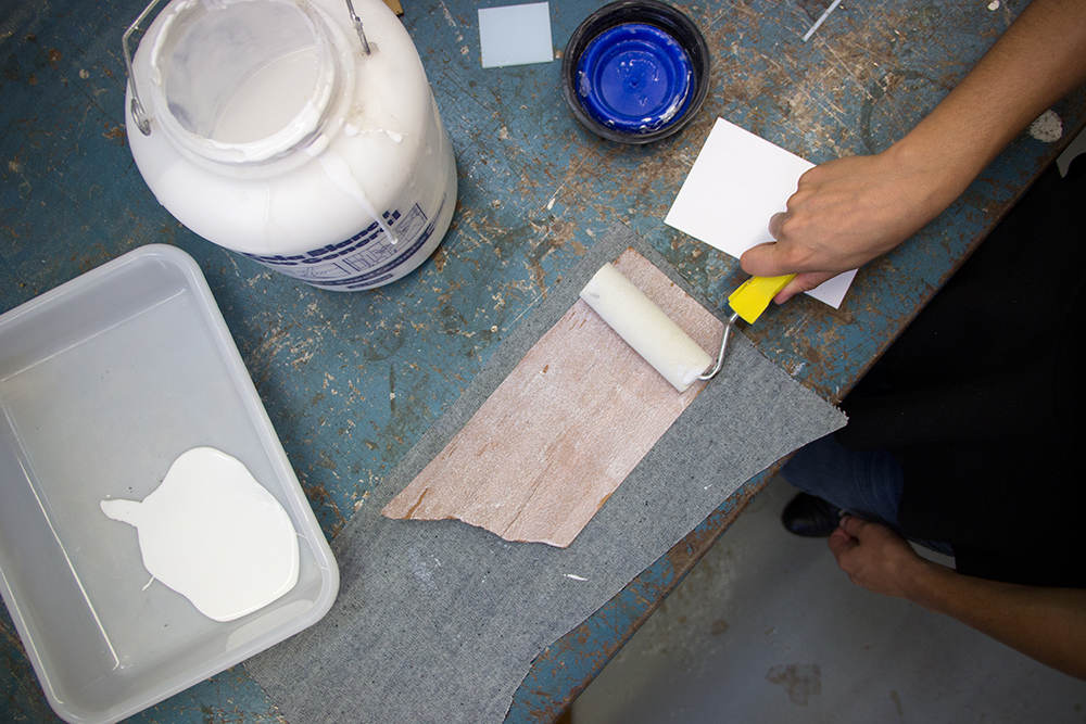woodglue + brush or paint roller